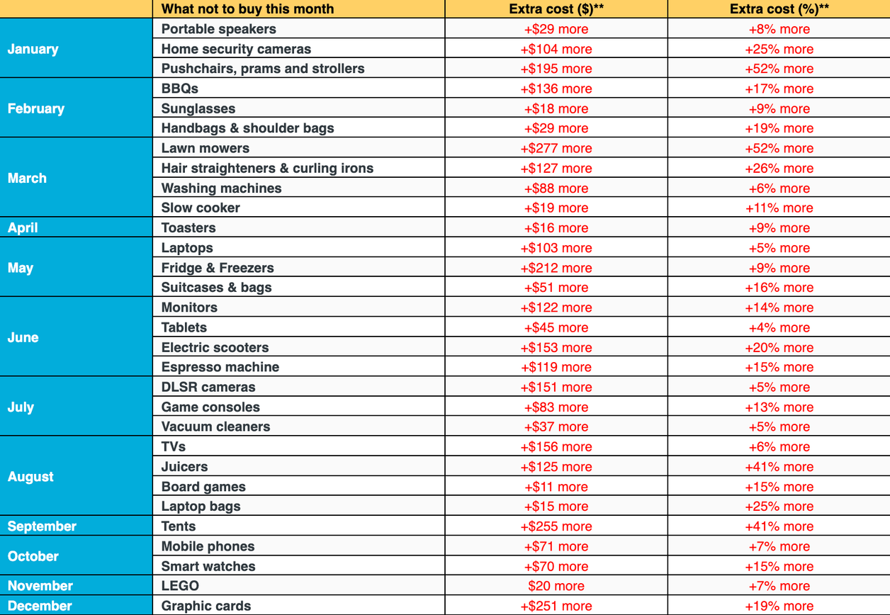Plan your spending: the best (and worst) months to buy revealed