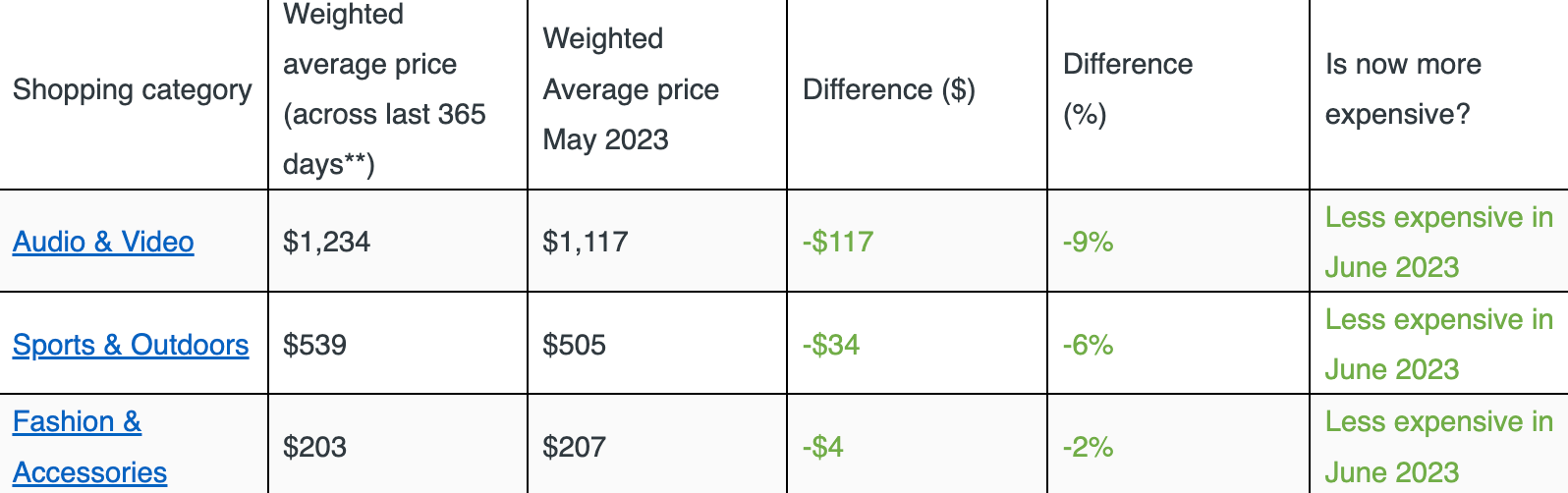 Encouragingly, PriceSpy’s study did reveal average price points across 27 percent of the shopping categories it researched decreased in June 2023 compared to the rest of the year**.