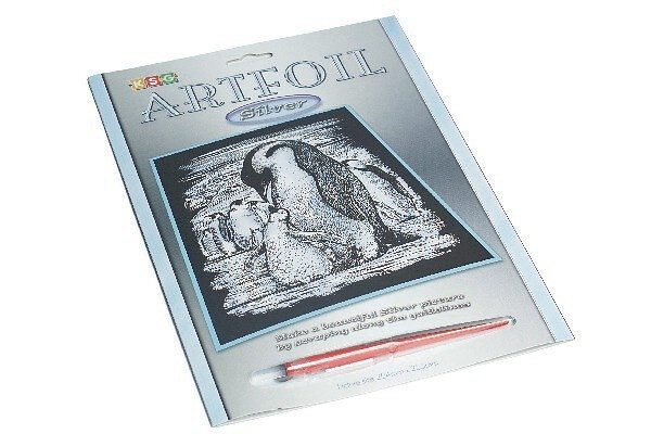 Skrapkonst 20x25cm, Pingvin med ungar