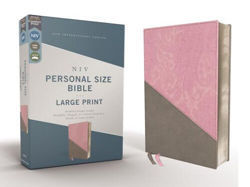 Niv, Personal Size Bible, Large Print, Leathersoft, Pink/Gray, Red Letter Edition, Comfort Print