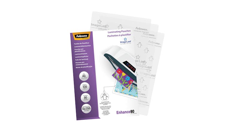 Fellowes Laminate A5 Gloss 80 micron Pouches - 100 Pack