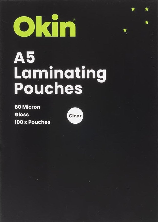 Okin Laminating Pouches A5 80 Micron Pack - 100 Sheets