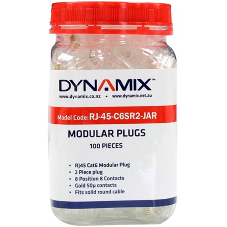 Dynamix RJ-45-C6SR2-JAR Cat6 RJ45 Plug 100pc Jar, 8P8C 2 Piece Modular Plug (Rounded Solid) 50 micron