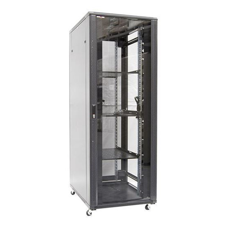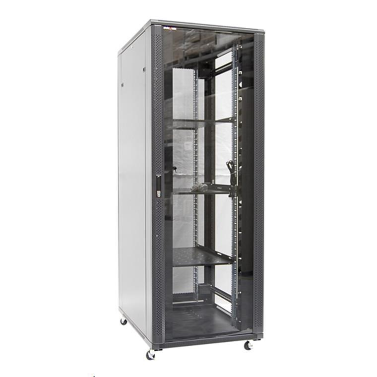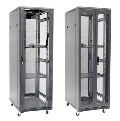 Dynamix RSR37-6X8 37RU Server Cabinet 800mm Deep (600 x 800 x 1853mm). Incl. 2x Fixed Shelves, 4x Fans, 25x Cage Nuts, 4x Castors & 4x Level Feet. static load. Glass front door, mesh rear door. 6-Way PDU installed.