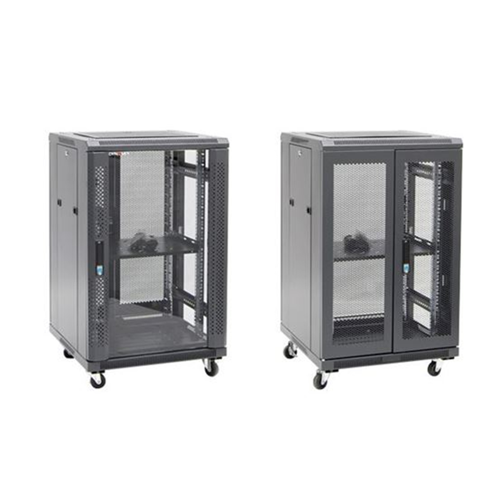 Dynamix RSR18-6X8 DYNAMIX 18RU Server Cabinet 800mm Deep (600x 800x1008mm) Includes 1xFixedShelf,4x Fans, 25x Cage Nuts 4x Castors & 4x Levelling Feet, Glass Front Door. Bifold Mesh Rear Door. Black