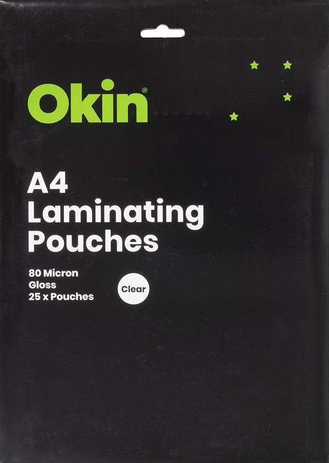 Okin: Laminating Pouches - A4 Gloss 80mic (Pack 25)