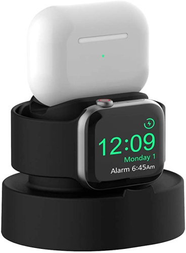 SOKUSIN Sokusin Easy Instal Charger Stand for Apple Watch 38mm 40mm 42mm 44mm iWatch 1 2 3 4 5, Charging Holder and Night Mode, AirPods Pro Dock,Black【Cables NOT Included】