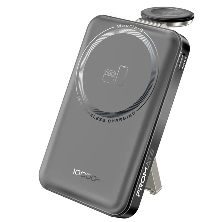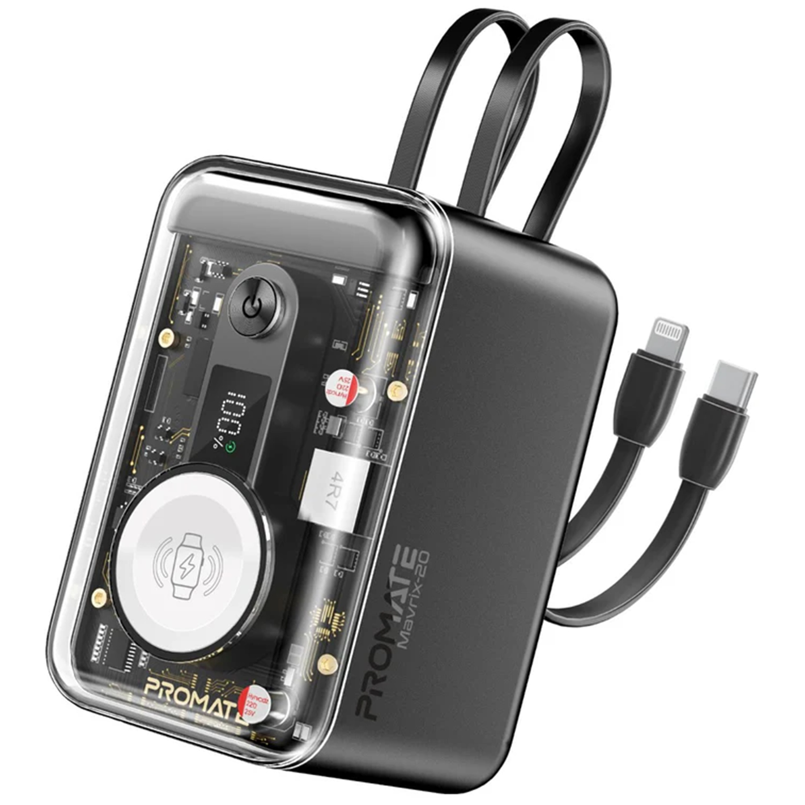 Promate MAVRIX-3 10000mAh 3-in-1 Smartphone & Apple Watch Charging Power Bank with Dual USB-C & Lightning Cable Connectors, 20W PD USB-C In/Out QC 3.0 Port, Smart LED Display.
