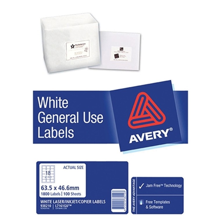 AVERY L7161 General Use Labels A4 18 Labels/Sheet - 100 Sheets