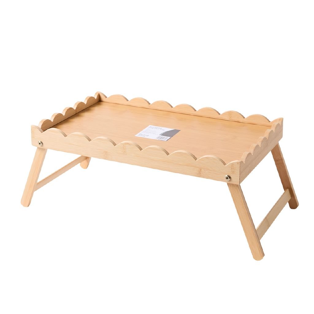 Living & Co Fold Out Scalloped Bamboo Tray Natural