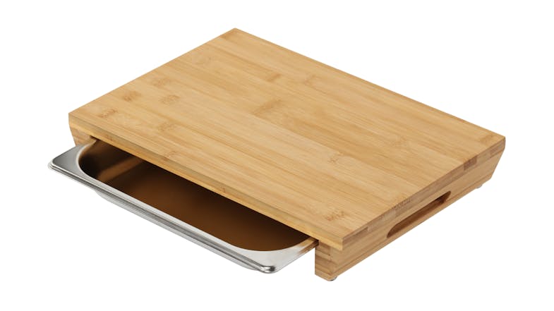 Gourmet Kitchen Bamboo Cutting Board with Pull-Out Stainless Steel Tray