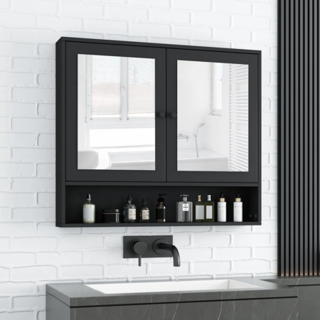 Bathroom Mirror Cabinet Medicine Shaver Shelves Shaving Wall Cupboard Organiser Storage Floating Vanity Furniture With Door Black 90x12x65cm