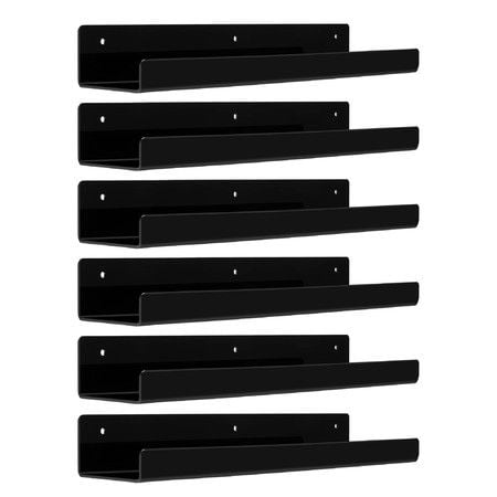 Black Acrylic Shelves for Storage,15" Floating Shelves Wall Mounted for Kids Bookshelf/Display Ledge Shelves for Bedroom,Living Room,Bathroom,Kitchen,Set of 6