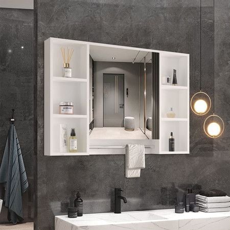 Bathroom Mirror Cabinet Medicine Shaver Shaving Wall Storage Cupboard Organiser Shelves Furniture Bathroom Vanity with Door White 90x12x65cm