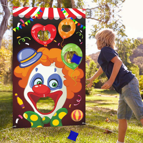 Blulu Carnival Clown Bean Bag Toss Game Set - Fabric Banner with 3 Bags & Hanging Ribbon (80 x 130 cm)