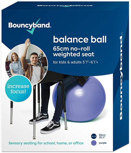 Bouncy Bands Balance Ball - No-Roll Weighted Seat is a Flexible Chair for School, Office or Home (Large, Purple)