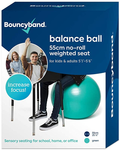 Bouncy Bands Balance Ball - No-Roll Weighted Seat is a Flexible Chair for School, Office or Home (Medium, Green)