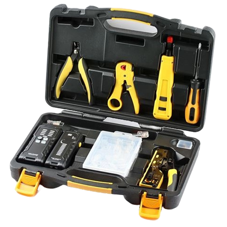 Sprotek STK-9603 6 Piece Network Installation Kit with Storage Case. Includes Punch Down Tool,RJ45LAN Cable Tester, Stripper and Cutter, Modular Crimping Tool.