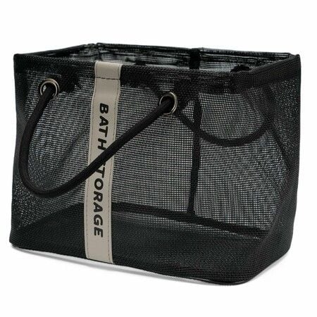 Mesh Large Capacity Shower Basket Breathable Quick Dry with Thick Cotton Handle for Gym Travel Beach College Dorm Christmas Gift (Large Black)