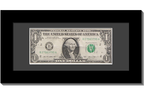 Creative Picture Frames First Dollar Currency Frame (Satin Black) – Mat Opening 2.3 x 5.8 in, Full Strength Glass, Easel Stand & Wall Hanger Included
