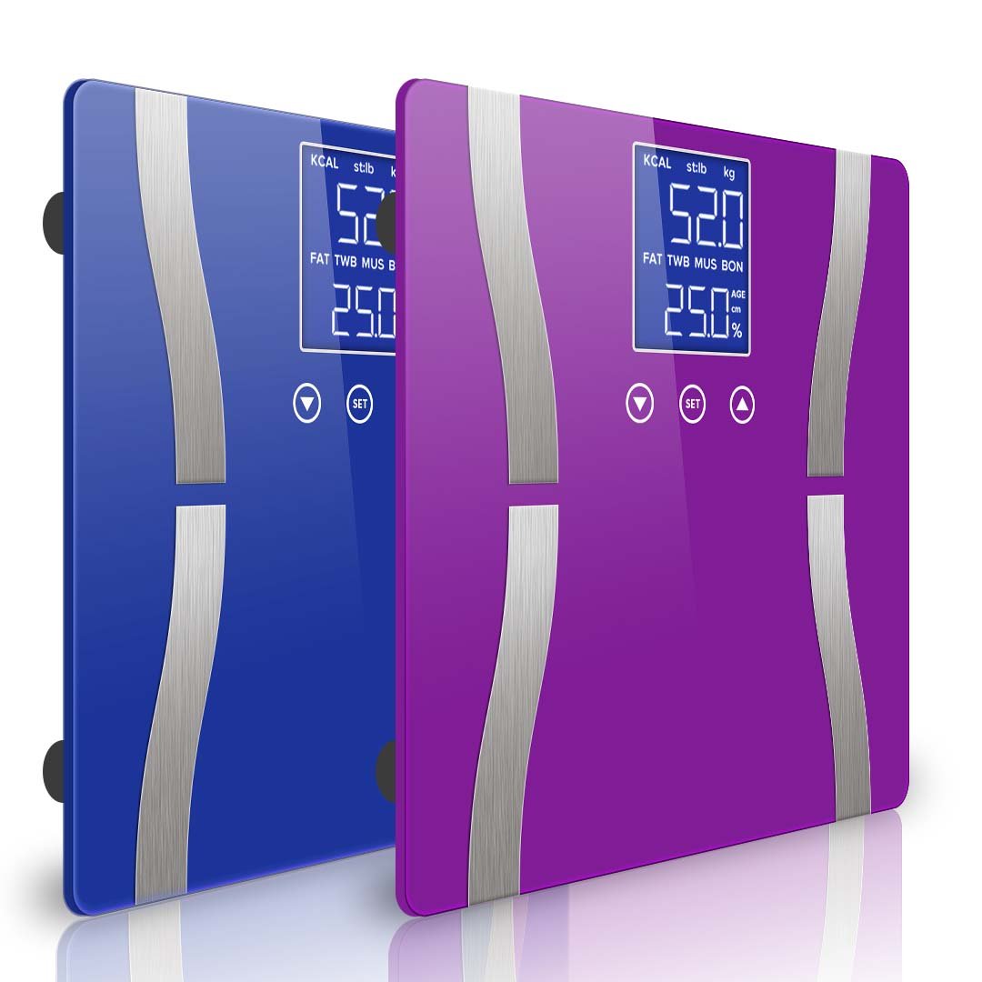 SOGA 2X Glass LCD Digital Body Fat Scale Bathroom Electronic Gym Water Weighing Scales Blue/Purple - - BodyFatScaleBLU-PUR