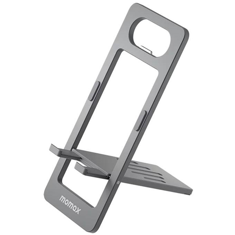 Momax Handy Fold Phone Stand - Space Grey, Durable Aluminium Build, Ultra Thin Design (4mm Thick Folded), Built-in Bottle Opener, Quick Deployment