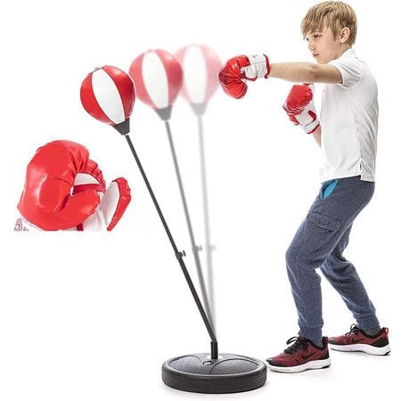 Punching Bag for Kids,Adjustable Kids Punching Bag with Stand,Boxing Bag Set Toy for Boys & Girls,Age 3+ (Red White)