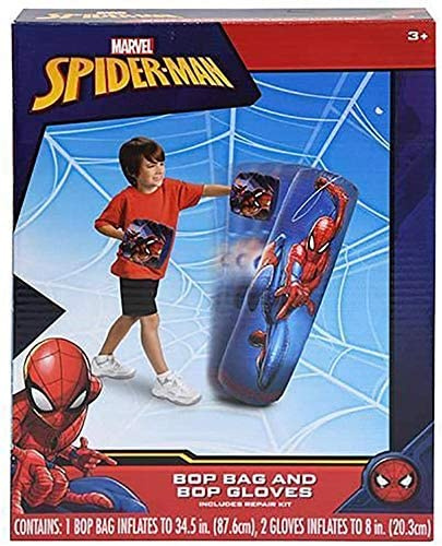 Spider-Man Spiderman Inflatable Bop Bag & Gloves Set Kids Punching with Gloves, Freestanding Superhero Blow Up Bouncing Boxing for Exercise, Durable Heavy Duty Indoor and Outdoor - 90cm