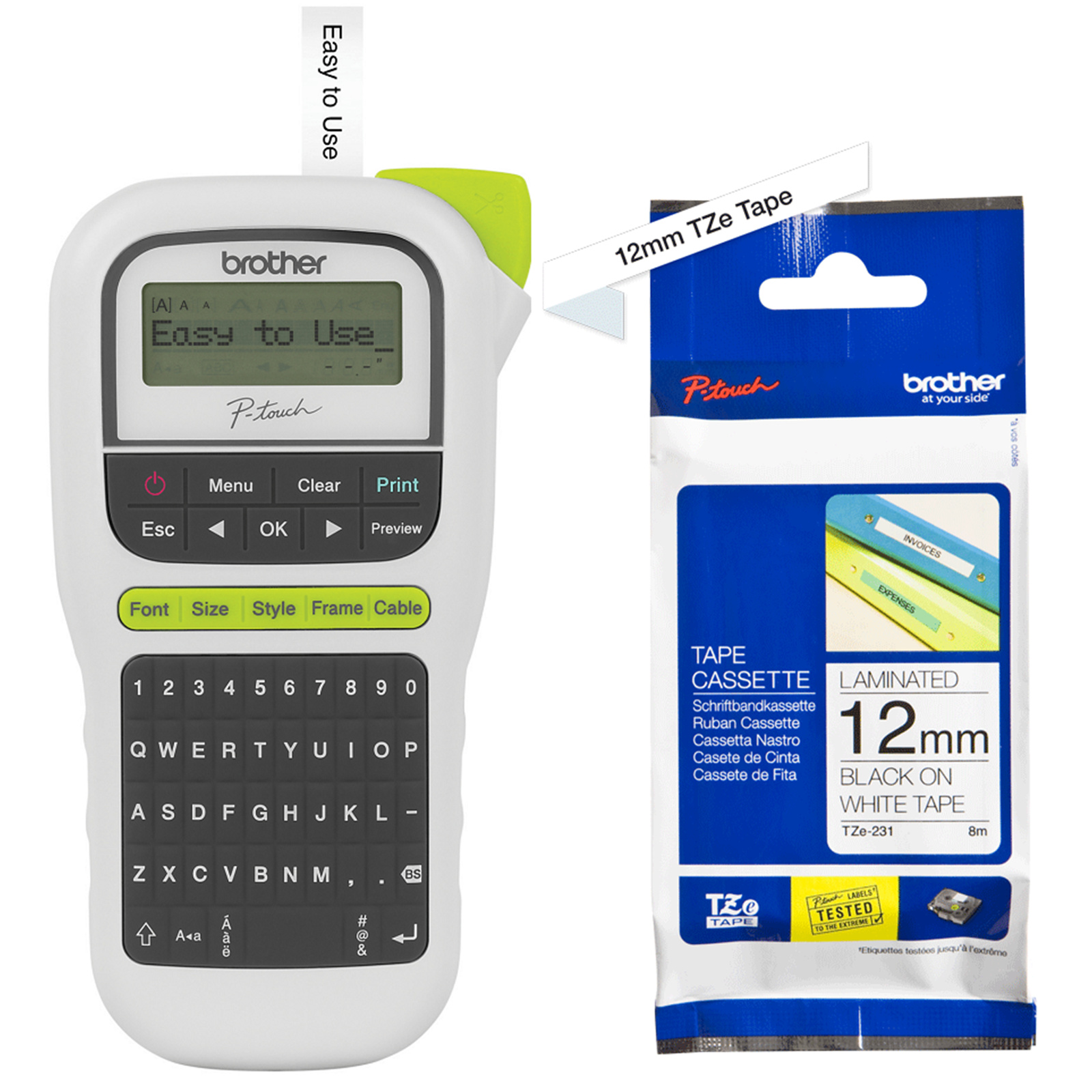 Brother PTH110 LABEL MAKER + TZE231 Laminated Tape - 12mm x 8m Black on White Bundle