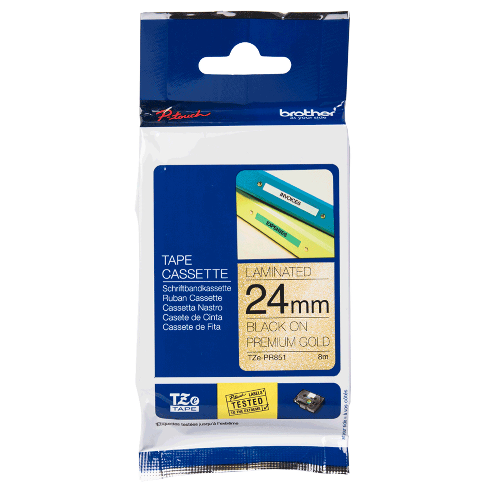 Brother TZePR851 P-Touch Black on Gold Glitter Premium Laminated Label Tape - 24mm Wide