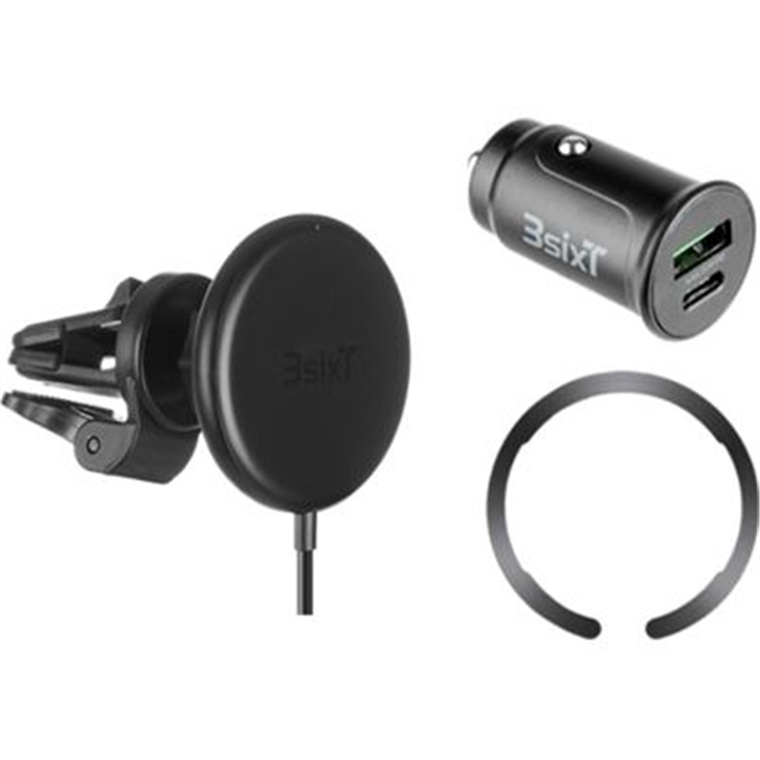 3SIXT 3S-1925 15W Magnetic Wireless Car Vent Mount with Chargers - Black