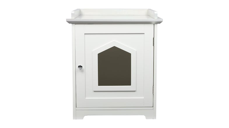 PaWz Covered Discreet Cat Litter Box Cubby with Shelf - White