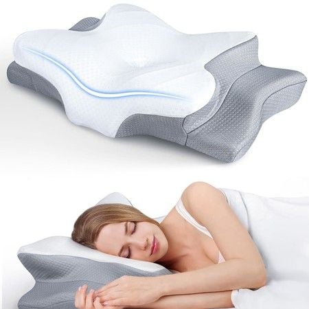 Cervical Butterfly Pillow for Neck Relief,Ergonomic Orthopedic Memory Foam Pillow with Pillowcase,Support Pillow for Sleepers Color White And Grey