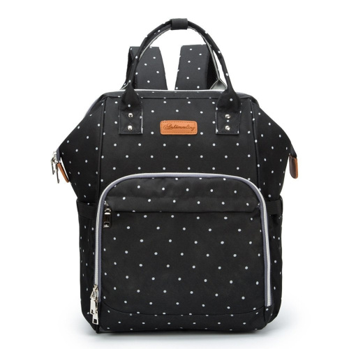Paramount City ParaCity Nappy Bag Waterproof Changing Backpack Multi-Functional Large Capacity Travel Organiser with 1 Pad,1 Insulated Bottle and Pram Clips(Black Polka Dot)