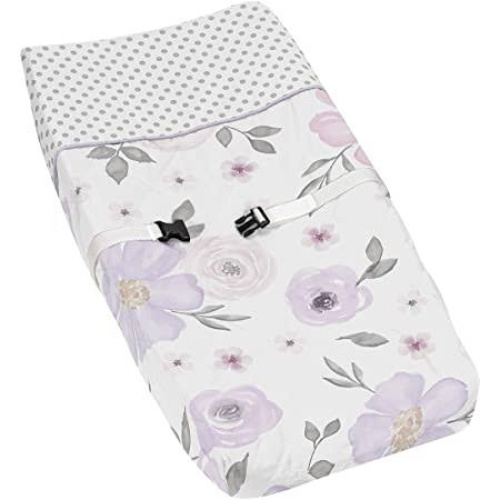 Sweet Jojo Designs Lavender Purple, Pink, Grey and White Changing Pad Cover for Watercolour Floral Collection