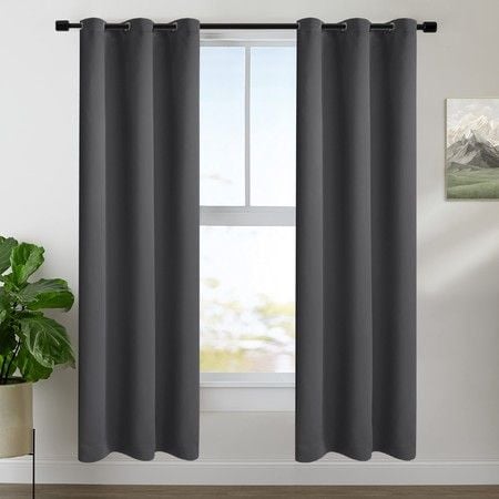 2X Grommet Blackout Curtains Thermal Insulated Noise Reducing Light Blocking Room Darkening Curtains for Living Room, Grey,107x213cm
