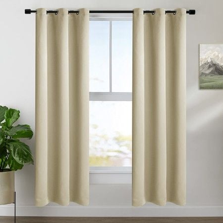 2X Grommet Blackout Curtains Thermal Insulated Noise Reducing Light Blocking Room Darkening Curtains for Living Room, BEIGE,107x213cm
