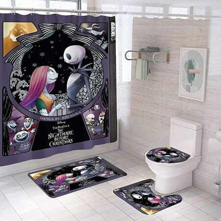 4-Pack Halloween Decorations Shower Curtain Set with Non-Slip Rugs and Bath Mats,Bathtub Curtains with 12 Hooks,Waterproof Bathroom Decor