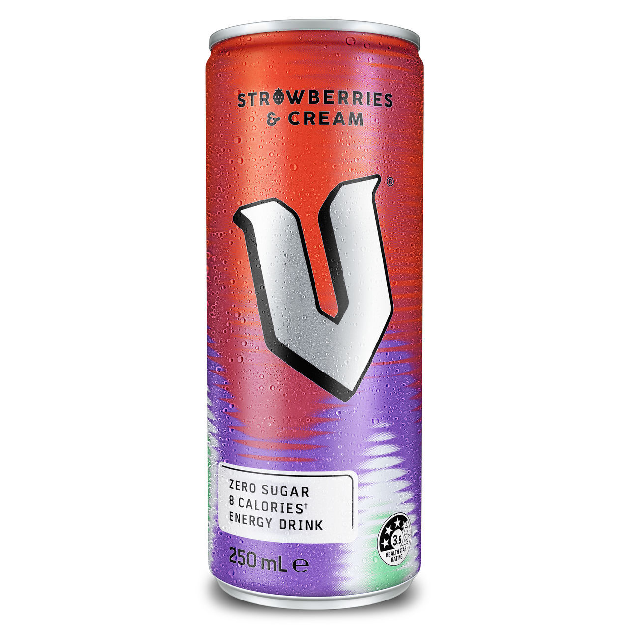 V Energy Drink Can Zero Sugar Strawberries & Cream 250ml (24 Pack)