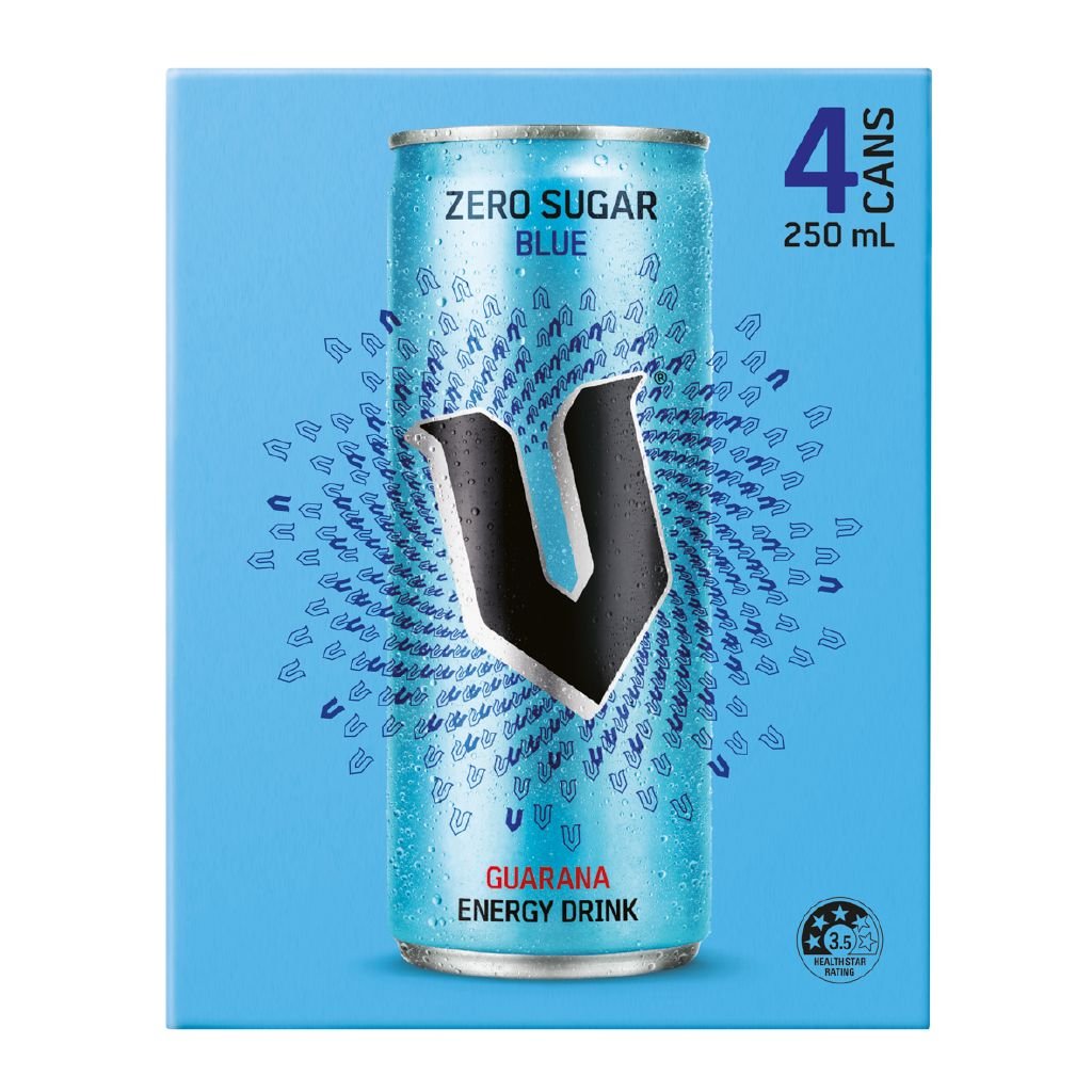 V Energy Drink Zero Sugar Blue 250ml 4 Pack