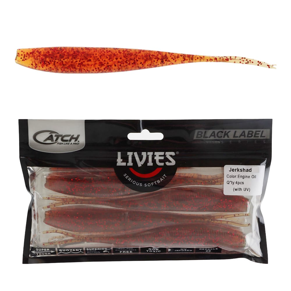 Catch Black Label Livies Jerkshad Soft Bait 5in Engine Oil Qty 5