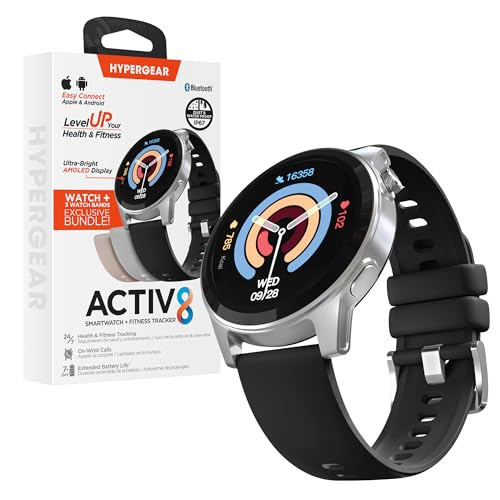 HyperGear Activ8 Smart Watch with Fitness Tracker - iOS & Android for Women and Men, AMOLED Display Heart Rate Sleep Monitor