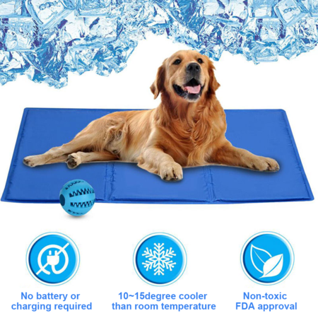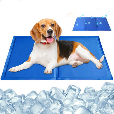 Pet Cooling Mat Foldable Puppy Ice Mat Blue Double-layer Pressing Ice Pad Machine Washable Summer Reusable Training Pad For Dog Size M