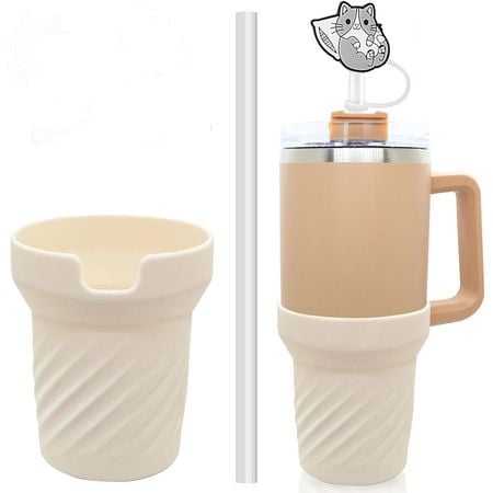 Silicone Boot for Stanley Cup 40oz, Cream Bottom Boot for Stanley IceFlow 20 30oz White