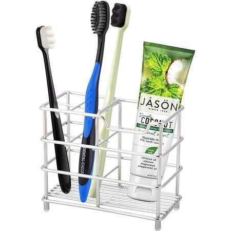 Metal Toothbrush Holder Stand for Bathroom, Stainless Steel Ventilated Organizer with Slots for Electric Toothbrushes, Toothpaste, Razors and Small Comb