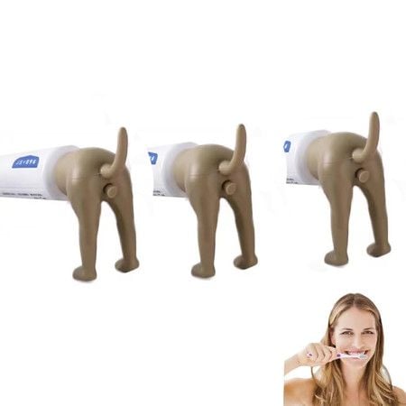 3-Pack Funny Pooping Dog Butt Toothpaste Toppers/Squeezer for Friends Family Brown