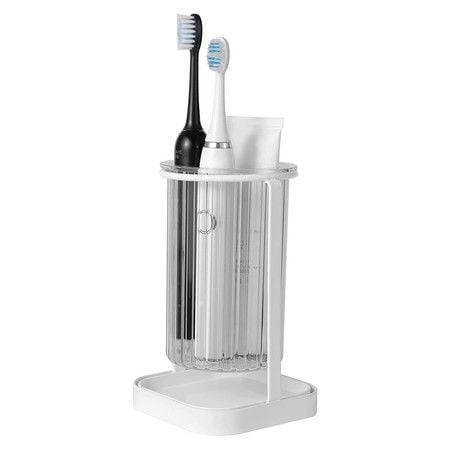 Toothbrush Holders with Drain Tray, Hanging Toothbrush and Toothpaste Holder Organizer Bathroom Caddy Countertop for Toothpaste, Razors, Electric Toothbrush, Clear