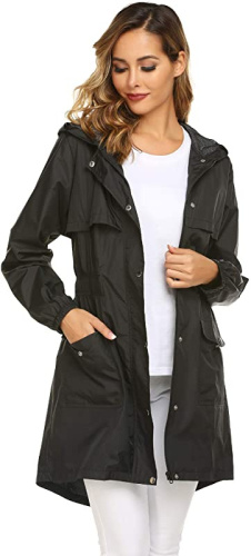 Unbranded Avoogue Womens Rain Coat Lightweight Hooded Long Raincoat Outdoor Breathable Jackets