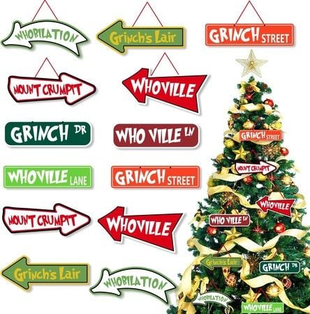 16 Pack Welcome to Whoville Hanging Paper Christmas Tree Ornaments, Grinch's Lair Themed Winter Christmas Tree Ornaments