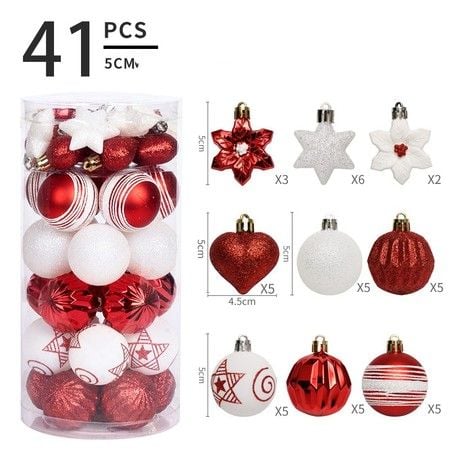 41 Pcs 5 cm Christmas Ball Star Ornaments Painting & Glittering Christmas Tree Pendants Shatterproof Decorative